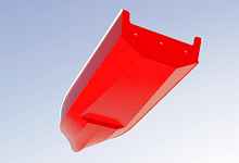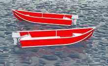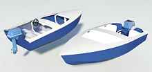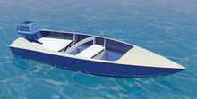 It's perhaps not surprising that the resultant design has a lot of similarities with the small outboard boats that are commercially available here yet Volare has one big advantage - weight. A 4.9m fiberglass boat here weighs over 800 lbs (and costs over 5,000 euros) - that's over twice the weight of the Volare Console version. This has a significant impact on the comparable power requirements, for example, according to the Crouch planing formula, the standard hull version of Volare will give the same performance as a production boat on 30% less power and the step hydroplane version (see below) will give the same performance on half the power.