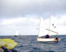 2007 and 2008 ECs.) We were stunned to learn that Oaracle was leading Class 4. Ridgerunner and Greybeard had flipped the day before around Middle Cape Sable when they both went forward to reef for the expected tough beat to Flamingo. (Ridgerunner's excellent account can be found here: https://capt-doug.blogspot.com/) The mainmast was broken and the mizzen was bent. DonKeyHoTey and MicroTom (Per Lorentzen and Tom Dyll) broke the rudder on their Lightning back in Pine Island Sound. On the first day, Jarhead (Bill Fite) got hit by a gust of wind and a big powerboat wake at the same time and nearly got flipped. By the time he got his Sea Pearl back under control it had drifted into a channel marker which ripped his mainsail. The only other Class 4 boat still going was LeatherLungs (Neil Calore) in his Chesapeake Light Craft dory. (He had gashed his hand on the first day, gotten five stitches, and kept sailing and rowing!)