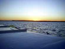 Soon the waves picked back up but at least we were able to stay on one tack heading down the bay. In the choppy water, both Core Sounds soon slid by us. It was another long, wet slog and the sun disappeared under the horizon long before we reached the end of the bay. A serious fright came when a powerboat running without running lights sped by about 50 feet away - fortunately Oaracle's lights were on.