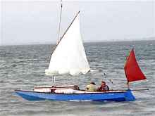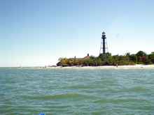 Although on reflection, I decided we had come close but not to the brink. We probably went over about 45 degrees or a bit more - plenty in an unballasted boat. In retrospect, I also had made a mistake by having the leeboard about halfway down. It really wasn't needed broad reaching but I thought it might help if we needed to do a bit of quick maneuvering. But with the waves trying to shove Oaracle sideways, the board resisted that tendency. Instead of yielding to the wave and sliding away from its power, the leeboard tried to hold the boat in place, increasing the heeling tendency of the hull. Put another way, it tripped the hull. If the board had been all the way up, the boat probably would have slid away from the wave without the panic party. On the other hand, if the board had been all the way down. . . . Anyway, after a few more nerve-wracking minutes we were across the mouth of Boca Grande and out of the foul tide. The seas died down and we shot up past Cayo Costa island doing 6.5 to 7 knots. A pause to put in a cautionary reef didn't affect speed at all but made the ride more stable and Oarcle kept up a good clip down the northern part of Pine Island Sound.