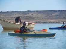 Afterwards seven kayaks and a homemade canoe went north across the lake in search of the place where the Rio Grande enters Elephant Butte Lake.