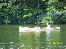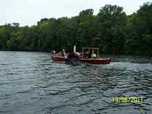 We came across a double sided, steam powered, paddle wheeler. Home built boat and steam engine. |