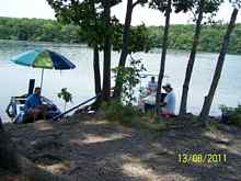 Steve watches Jack's boat ... Just about ready to head out. Nokamixon is an attractive big lake. |