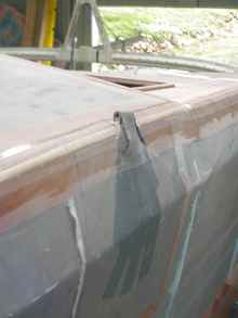 Next comes a layer of glass cloth. Generous overlap the U.D. strands inside and outside.