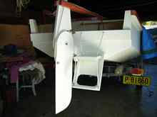 1. A Main frame which is hinged to the transom & contains the bottom step & is from 6mm ply with solid timber framing.