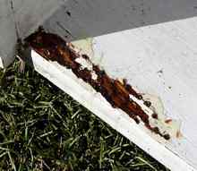 | The plywood looks almost normal under the paint, but rot is lurking. |