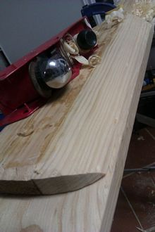 After gluing the parts of the back together the paddle was given a bit of external shape. I went fairly close to the final shape I was after in the blade but, as you may see later, it was mainly so I had a fair clue on how much to hollow out of the centre and then so I could know how much I could take off when doing the final shaping. I really should clean the sole of that plane a bit better.