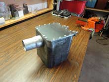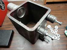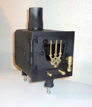 The main body of the stove is a piece of mild steel box section, 3/8 inch thickness and six inches by six inches by seven inches long. |
