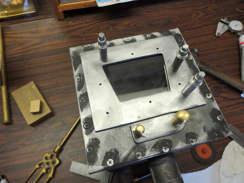 The front was made much the same way, but I used countersunk 6-32 screws, and prior to installation I cut out the opening for the door. |