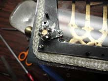 | The hinge is a plain old door hinge, cut and shaped. I shimmed it so that it would make the door fit nicely with the gasket thickness taken into account. |