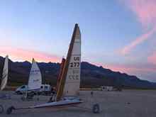 Painful as it is to sacrifice prime sailing weekends on Flathead, two are sacrificed in September to motor south the the Alvord Desert in southeast Oregon for eight days of dirt boating. In years past we've gathered in October, but this year we moved it up in hopes of warmer weather. Which we were granted! Sunny, sometimes hot, high pressure days brought mostly light air sailing in the late afternoons. Great hiking in the mornings, with the DRZ for access to the nearby ridges and peaks. All with a view of the playa, just in case the wind shows up! Two days delivered winds in the mid teens, which was enough to push the big boats over 50 mph, which translates into multiple runs the full length of the lakebed, and exhilarating slalom runs through the pucker bushes! Each day slides into dusk, fabulous group meals leading to hours under the vast canopy of brilliant stars, a prominent Milky Way, and a camaraderie I find intoxicating. Even managed a couple of night rides, one late, under moonlight. One pre moonrise, with a headlamp duct taped to the mast! Always tough to pack up at the end of the outing, but we know we'll gather again in March.