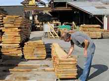 A day before my arrival, the others had visited a true lumber yard, from which they acquired some beautiful 10'x5' sheets of Gaboon plywood. For dimensional lumber, they went right to "the source", essentially buying fresh sawn planks of real trees! Mik and Paul had spent much of the previous day sawing and planing this raw lumber down to the dimensions that we would need for our build.
