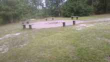 As you can see, there is a permanent council fire area with permanent seats. Really well done, nice acid stained concrete, and a separate cook building with a whole lot of picnic tables. The place looks perfect for a boy scout troop to have a great gathering.
