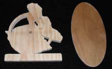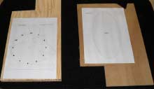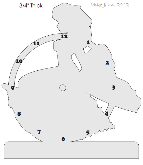 So now you go ahead and glue your pattern to the wood. Laminated ply up to 3/4" is great but pine should do. Knots are good and add character with these projects as long as they are not in a real bad place. I prefer using plywood myself. It is much stronger and that is handy for the clock circle on the left but with mine I chose 3/4" thick pine and a 1/4" thick base. It does not matter a whole lot what you use and while I am at it this project, unlike rocket science, is meant to be fun and not perfect. We are using scraps remember. If the hands are a bit long or such, who cares.