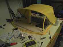 Dodger frame temporarily in place with the cloth I will be using in the foreground.