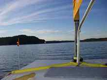 The performance of the ECduck was once again surprising. I had finally brought along my GPS and was recording speeds of 4.6 knots going to windward with a partially reefed sail! I also had mounted a wind indicator on the deck and I was surprised by how close I could point ECduck while still maintaining good speed. Unless I had the wind coming from the exact wrong direction, or no wind at all, I should be able to make checkpoint 1 before the Sunday deadline. The stadium seat's back was too short meaning it would slip below the aft deck and I would have the wood back there pressing painfully into my back.