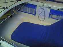 My next tweak worried me almost as much as adding the vent to the dodger. I had decided to cut away my rowing thwart extending the cockpit opening to the curved bolt rope track that defined the front of my dodger. This should give me enough hip room to make sleeping on my side possible and just give me more room overall. I reinforced the deck with a new support beam. I was happy with how it turned out. However, this change would necessitate rowing from a kneeling position or sitting on some cushions.