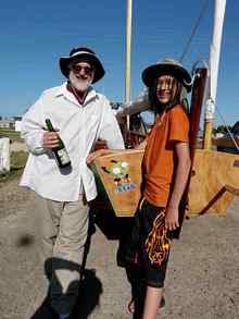 John Goodman and his children, Desiree’, 16 yrs old, David, 12 yrs old built their Goat Island Skiff, designed by Michael Storer of Australia. They started with a kit from Clint Chase Boat Builders and over a 6 month building period finished their boat in time for the 2010 Texas 200. Now after the 2011 Texas 200 the boat has sailed over 800 miles in 2 years without a single failure. That is a testament to a kids building ability.