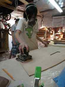 Dezi: Dad taught Ruben and I how to use a planer for the chines tonight; I got hit in the head more than once before we got a good system going --___--