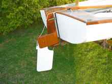 When I received her she sported a very tired finish (her deck had been painted green - ugh! - with what appears to be latex house paint by a previous owner, and her brightwork sorely needed rejuvenation). But her worst feature was a fixed deep rudder which kept catching the weeds and high bottom of her Rideau River home waters. Something had to be done to rectify this problem. To my mind, it simply does not make sense to fit a fixed rudder on a centreboard boat which is otherwise intended to be beached and generally manhandled in the shallows.