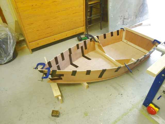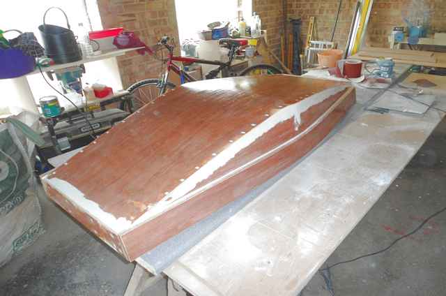 After being relegated to the garage, I got the boat on the operating table and gave it the once over with cascamite. This took 4 days to cure. I suppose you can use PU glue or any foaming glue but foaming glue pushes joints apart as it foams, not something I fancied happening in a boat.