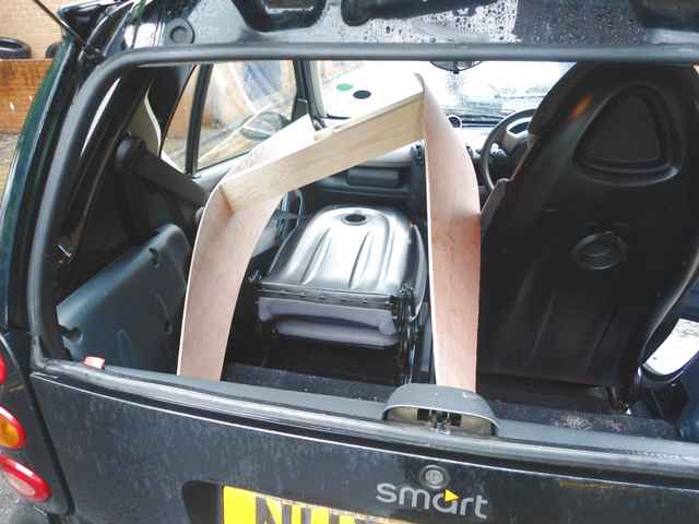 I whacked it together one day whilst in college, threw it in the car and set off home. I pasted a pub on my way back and could hear the laughter from the people sat by the road having a beer. It must have been a novelty for them to see a boat in a Smart car, who says you can't anyway.
