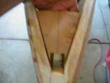 Fuzzy picture of mahogany block under the deck in the bow, hardpoint for u-bolt later |