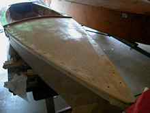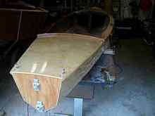 With those items settled, the same plywood technique made it pretty easy to make and install the deck plywood (paper pattern rough cut leaving the edges hanging over to be shaped and covered later by rubrail and cockpit sides).