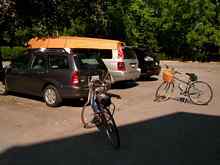 So with some scrambling to get the cartop ready to receive the boat and figure out how to safely tie it on, we decided to take it with us, and ended up kayaking out into the Niagara river and onto Lake Ontario. It was a relief that the boat didn't fly off the car on the freeway (and a relief, no doubt, to the other drivers in the vicinity).