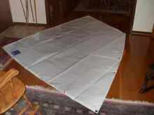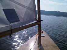 I tied the sail to the boom, rigged some rope loops for the luff of the sail, and decided the next morning, early, before anyone was at the reservoir to see any spectacular failures that might occur, I would see what happened.