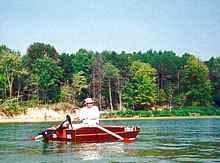 My son Ryan was home on leave from the Navy when this photo was taken as he piloted Lame Duck around Lake Vista, the small lake behind our home in Fishers, IN. |