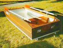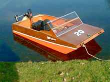 #2 was a lightweight at a finished weight of about 45 lb. With its thin lauan covering over foam, it appeared to be heavily built, and spectators at the ramps were often amazed to see me launch it by tossing it several feet into the water. |