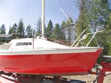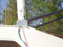 Just about all the time, I have to figure on launching, recovering, and rigging by myself. It's not that I'm anti-social. But, a long time ago I came to the conclusion that if you can't take your boat out by yourself, you're not going to be going very often. As a result of a Fibber Magee's Closet full of modifications and "improvements," such as: a beach cat rig (adding 5 feet to the mast length) and the need for a deeper rudder and waaaaaaay longer tiller (now up to 6 feet long); I have ended up with a lot of new strings to pull.
