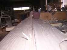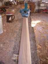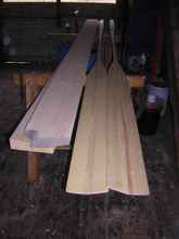 Here is a photo of the first two 15" oars. Next to them are two 8/4 pieces of ash that will make another oar (P45). |