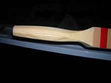 These oars are extremely lively. The handle in photo 46 is clamped to the bench and a 10# weight is on the end; the deflection is about 12". |