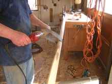 Now comes the noisy bit. I like to use a draw knife (P26a) if the grain is good, but this ash is quite wild and it is easier to do it with a power planer (P26).