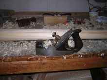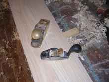 This particular plane is $35 from Lee Valley and works well. An old wood smoother that I gave a slight round to transitions to the end of the blade (P38) and then a variety of small planes (P39) finish up the shape.