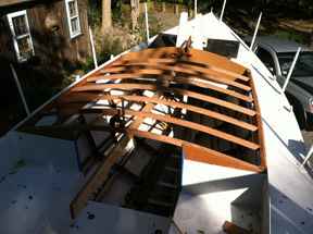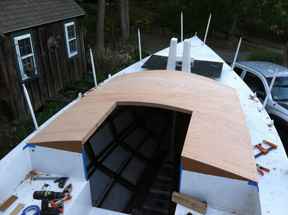 Right now I am building the cabin top, companionway, and forward hatch cover, so work on the interior can continue this winter. Here are a couple of photos.