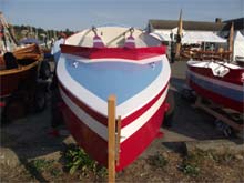 I met Dave Mortenson at the Port Townsend Wooden Boat Festival in September of 2011. He was sitting in the shade of a couple of odd-looking garishly painted little red-white-and-blue rowboats, fully decked double-enders with flat bottoms and little rocker. They were loaded on two trailers, side by side, with Dave in a folding chair between them. I walked by him a few times, actually, glancing at the boats without saying anything. Bigger fish to fry. Gaff schooners. Oughtred yawls. Elegant faerings and sprit-rigged longboats. John Welsford and his SCAMP.