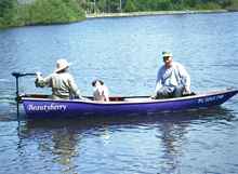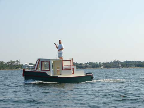 Here's a picture of me showboating & tooting my own horn (bicycle horn). I had tied a line to the steering wheel and then routed it over the top of the boat and back to the steering wheel. I then stood on the top and took pictures of the boats in the Florida-120 as I overtook them.