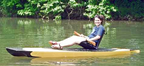 I thought I'd show you my latest design - the combination sit-on-top kayak and stand-up-paddleboard. So far, trials have gone well and I am pretty pleased with her. A prototype of a longer version is already being built, too.