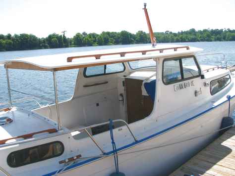 Chuck, thought this might be of interest. This little beauty is newly arrived at the Tea Gardens marina. You know, the one that has the 'NO WOODEN BOATS' sign. She wouldn't let me buy it! Can't think why? It's got a toilet which was the objection to the Bolger folding schooner. Oh well.