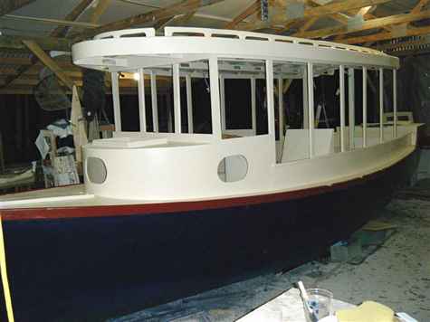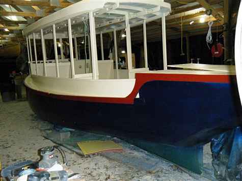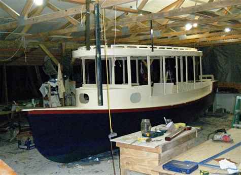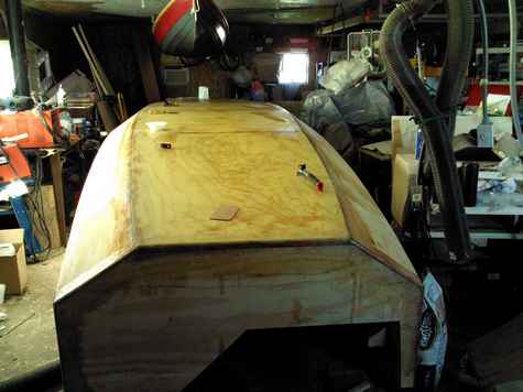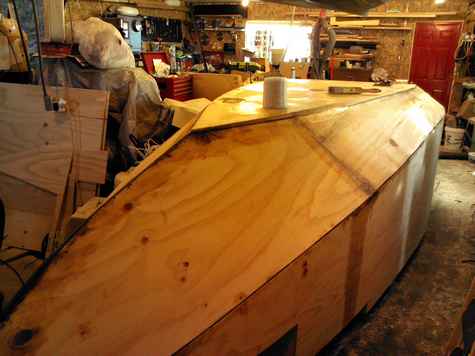 Here are a couple of pics of my Caprice progress. I'm hoping to be ready to flip sometime in April. Thanks to Max's book I'll be powering it with a classic 10 hp '58 Evinrude, and the sails from a Polysails kit. The cabin is a little taller (3" if I remember right) than the plans specify because I couldn't bring myself to cut off the excess plywood. So I'll see how much some extra headroom costs me in windage.