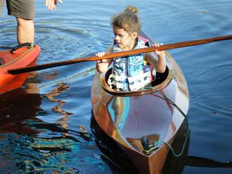 Cathy and Lance brought Izzy over on Sunday to try out her new kayak. She's four years old and took right to it like a pro. She started moving her arms around and soon discovered what made the boat go. You can see from the shine on the boat what a crappie job Lance did building it. This is the one he finished in the guest bedroom. Anything for a granddaughter.