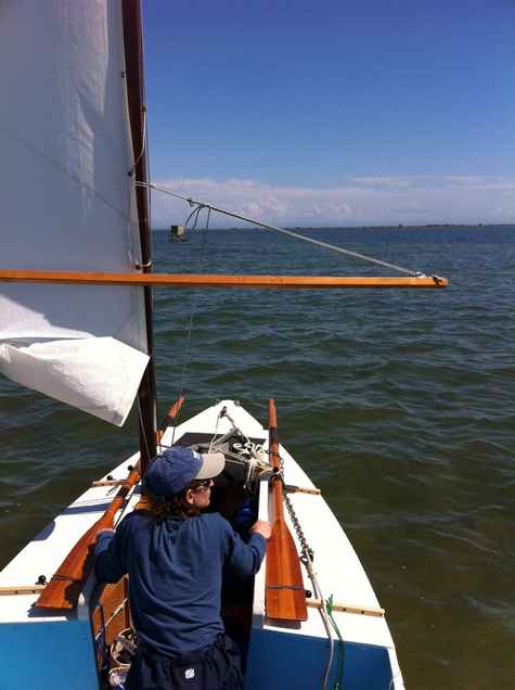 A couple of YouTube videos Chris's Sherpa sailing in very light air and him rowing it in no to little wind. We rowed together for a while and the speed of this capable boat is very good. After I took the rowing video, I handed him the oars to my Goat Island Skiff which where a little longer. He was able to increase his overall speed just a little with them.