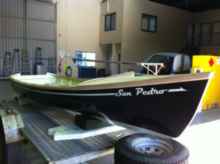 We are at the very early stages of testing, but she planes cleanly with two heavy men aboard while being pushed by a brand-new (and therefore, tight) Suzuki 6hp four-stroke. She also seems to plane cleanly with three large men aboard, but until we get speed figures we won't know whether she is in the planing or the semi-planing mode.
