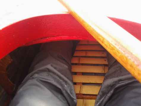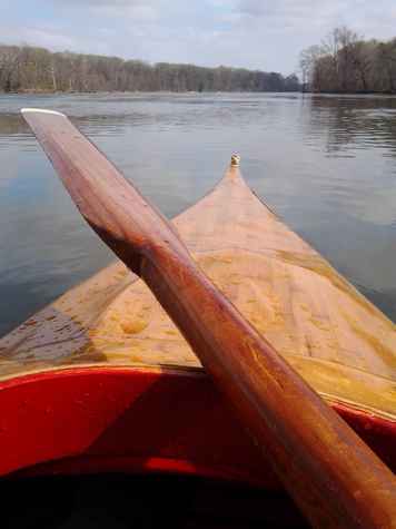 What a GREAT boat. Both Rick and I weigh over 200 lbs, and with both of us in her, the stern and transom just come close to kissing the water. She rows like a rocket, easily tracking and more surprisingly, easily turning (more later.) Satisfied, we put her away for the evening.