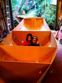Thought you might be interested in our boatbuilding competition held last weekend in Pender Harbour. The basics are: teams of four, given a collection of materials on the day of the event, one hour to plan, and then 3 hours to build some sort of craft to race round a set of buoys in the harbour. The materials change each year, have ranged from plywood and 1X2's to a cardboard sonotube, wood and plastic. As part of the celebration, teams from the high school build a quick canoe in the weeks before the event, and have their own race just before the adult event. There are also activities for younger kids, face painting, build your own toy boat, or pirate flags. Information and a collection of previous years photos.
