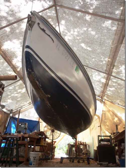 Steve's giving Chelsea a complete overhaul and took these pictures of her bottom to show why the Whitehalls were such great boats. Once you get them moving they don't want to stop. I've told you about how much trouble we had getting her to slow down, this is why.