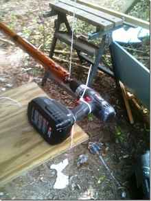I just tied the cordless drill down and put a zip tie around the trigger and slowly clicked it tight till the drill was just barely turning, the slower the better. I wasn't sure it would do it but it turned about one turn every four seconds. Going faster didn't work as well.